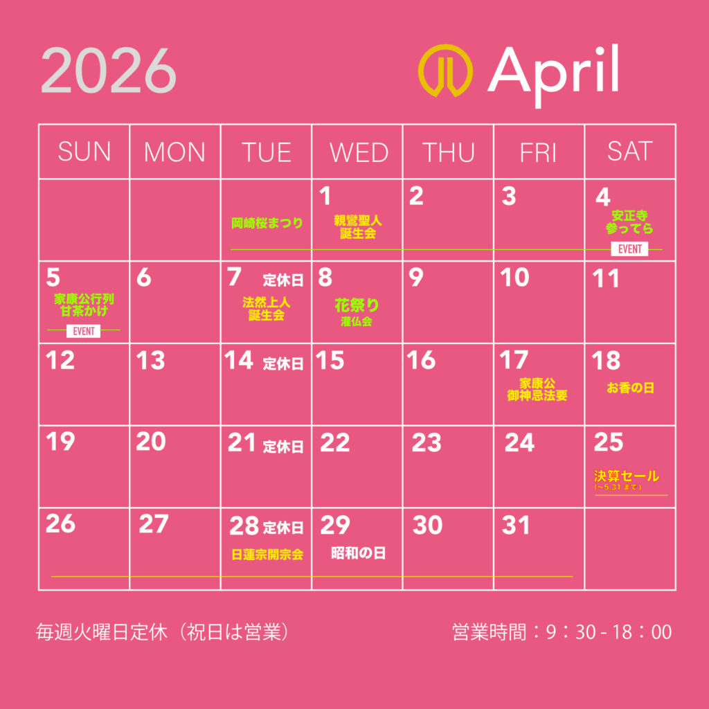 【愛知屋仏壇 2026年4月カレンダー】