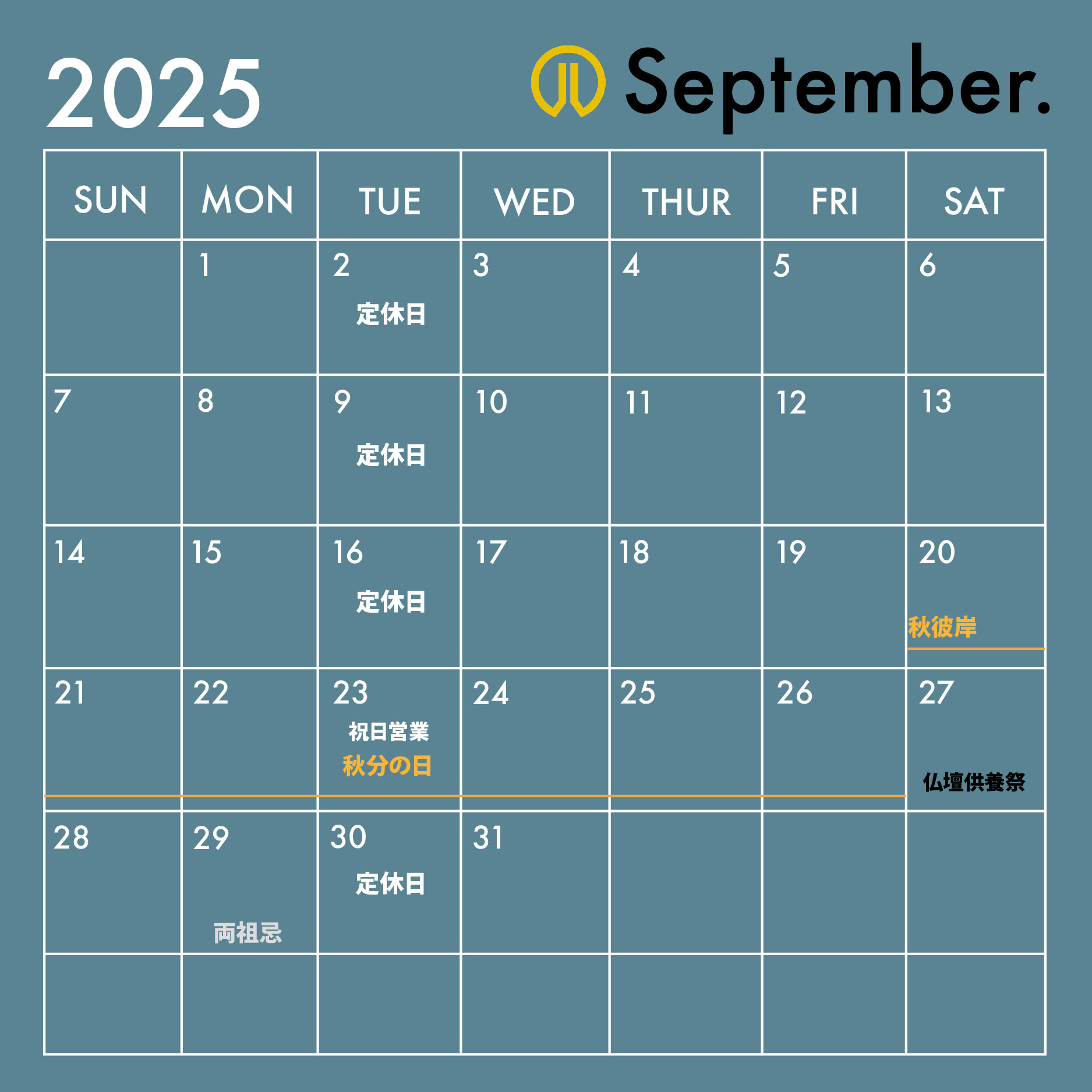 9月カレンダー
